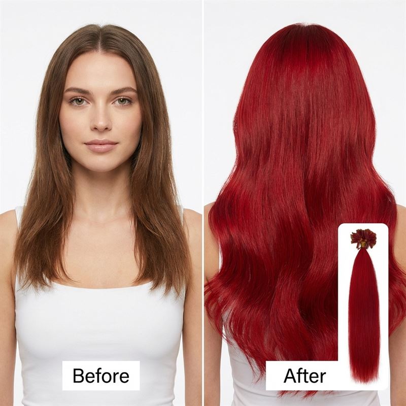 Bedømmelse for 50 cm hot fusion hair extensions - rød