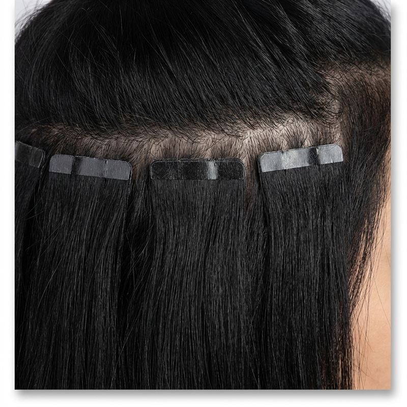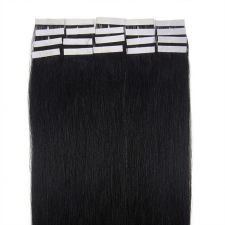 Få lækkert fyldigt hår med tape extensions af ægte remy hår. Vores tape extensions består af ægte hår, som er fæstnet til en gennemsigtig silikonetrense, som ser ud som din hovedbund.  Dette giver en usynlig overgang mellem dit eget hår og dine extensions. På silikonetrensen sidder et stykke skånsomt tape som nemt fæstnes til dit eget hår.