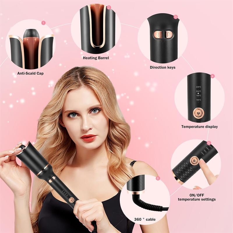 Automatisk Krøllejern med Keramisk Belægning og 2 vejs rotation – Perfekte Krøller på Ingen Tid