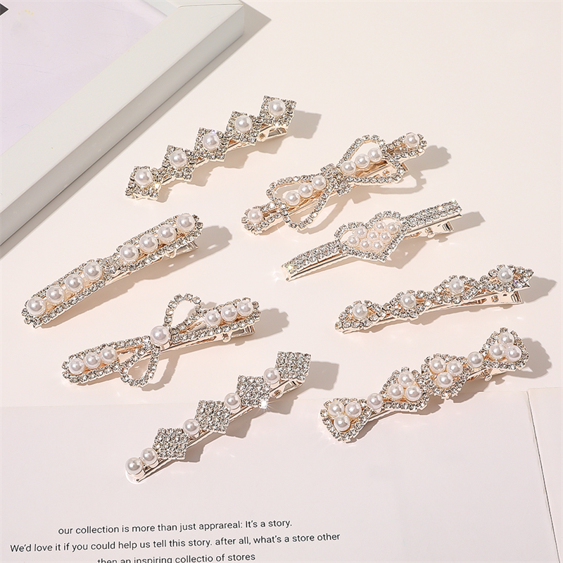 Funklende rhinsten hårspænde med perler. De skinnende rhinstene skinner i solen for at tilføje lys og elegant temperament til håret. Hårspænden kan det fremhæve dit generøse og elegante temperament. Denne hårklip er enkelt og smuk og egner sig til hverdagsbrug og forskellige formelle lejligheder, såsom fester, bryllupper, events m.m.