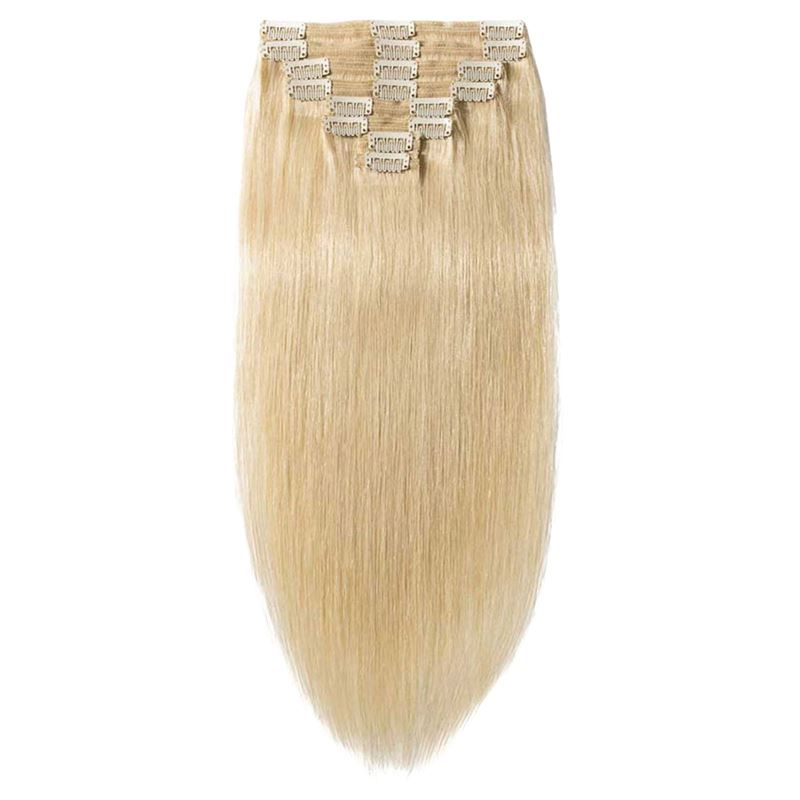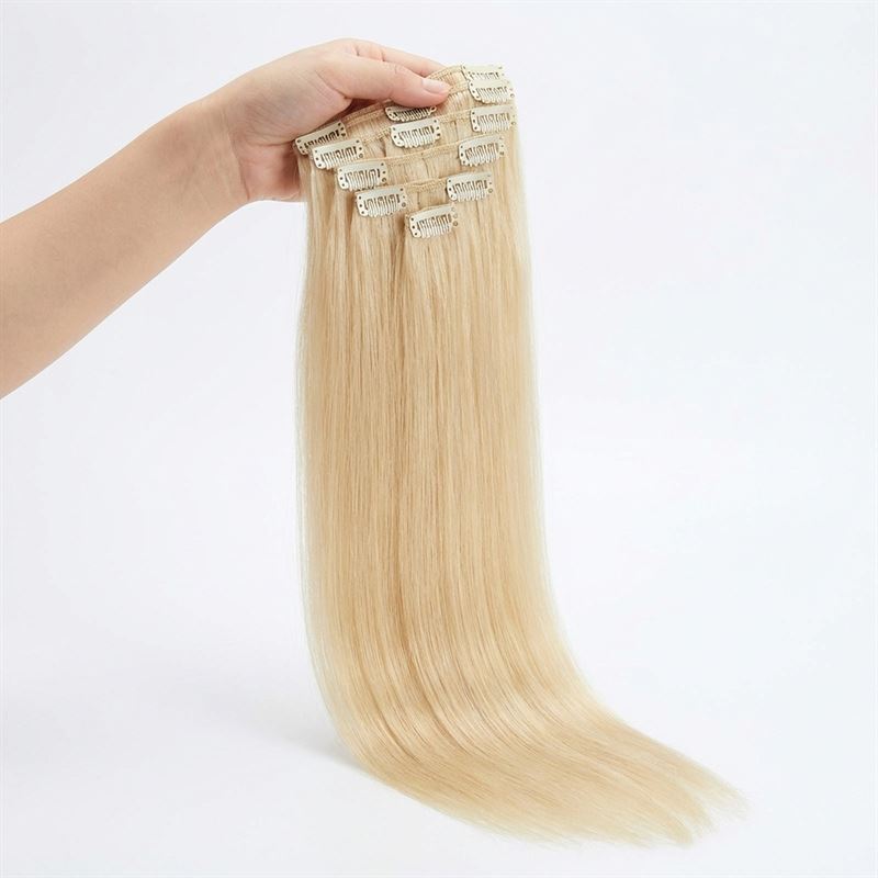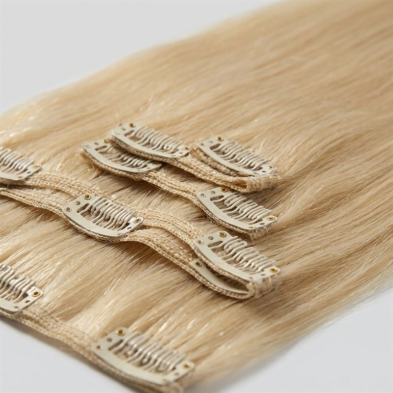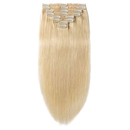 Farve blond 613#, 7 stk. clips on/off extensions i 100 % ægte remy hår i professionel kvalitet - samlet i én pakke.