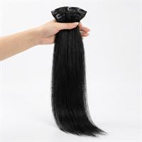 I denne eksklusive pakke får du Sort 1# clip-on/off extensions, der er nemme at bruge og smukt blander sig med dit eget hår: