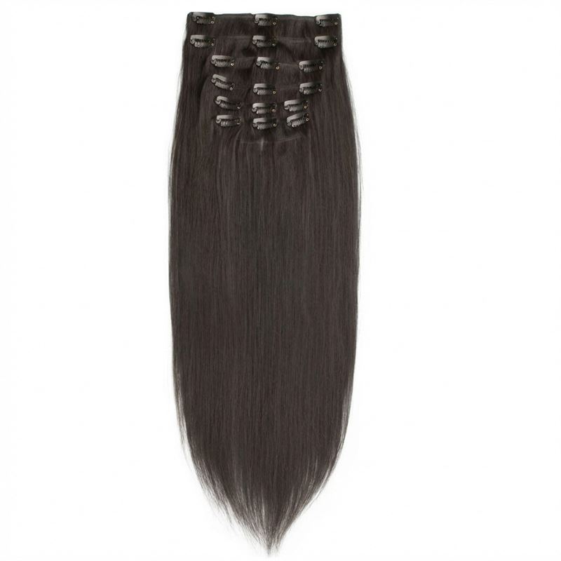 Farve sort 1B#, denne luksuspakke kommer med 7 stk. clip-on/off extensions, alle lavet af professionel kvalitet Remy hår.