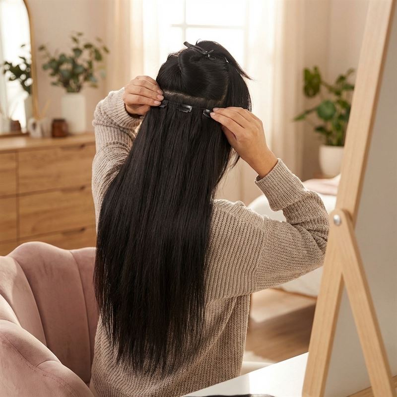 Transformér dit look med vores 100% Ægte Remy Hair Extensions i sort 1B#. Dette er ikke bare extensions; det er en investering i dit hår's skønhed og sundhed.