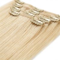Farve Blond 613#, 7 stk. clips on/off extensions i 100 % ægte remy hår i professionel kvalitet - samlet i én pakke.