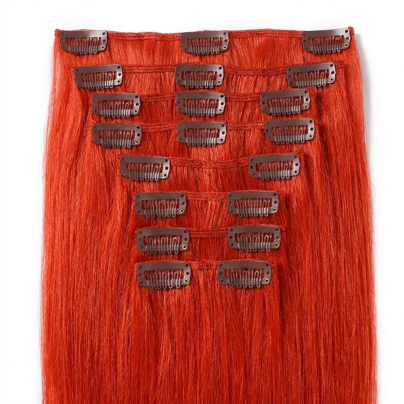 50 cm Farve Postkasse rød 7 stk. clips on/off extensions i 100 % ægte remy hår i professionel kvalitet - samlet i én pakke: