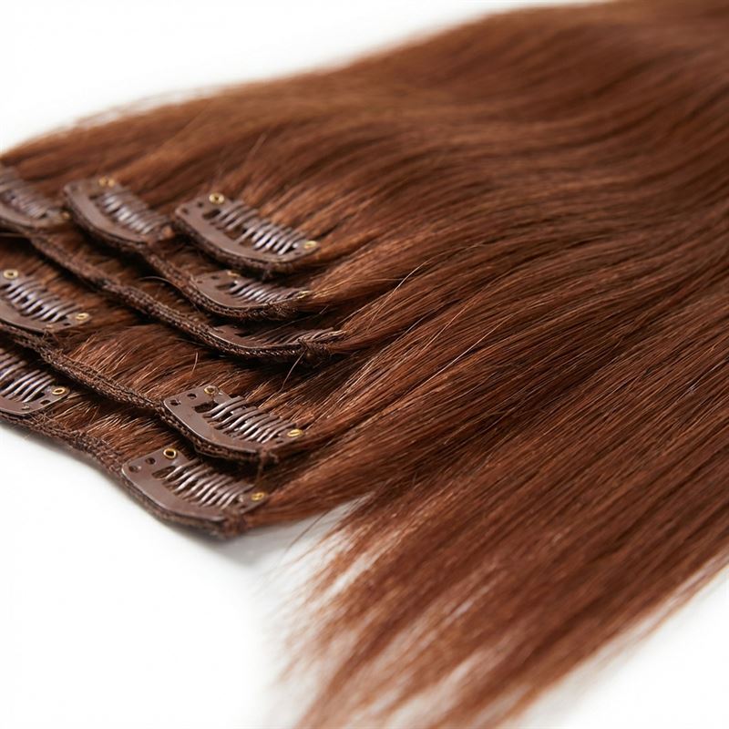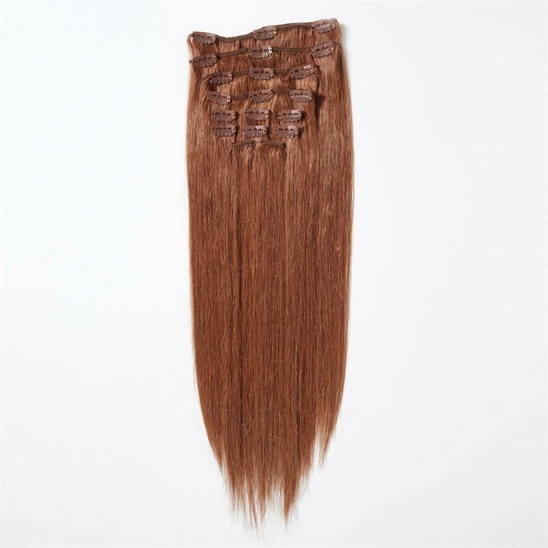 Lækkert 7 set kvalitet hair extensions sæt 50 cm 33# farvekode rød.