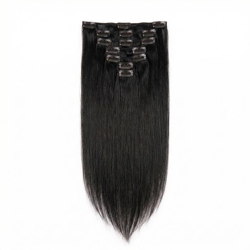 Clip on hair extensions #1 Sort - 7 sæt - 50 cm | Gold24