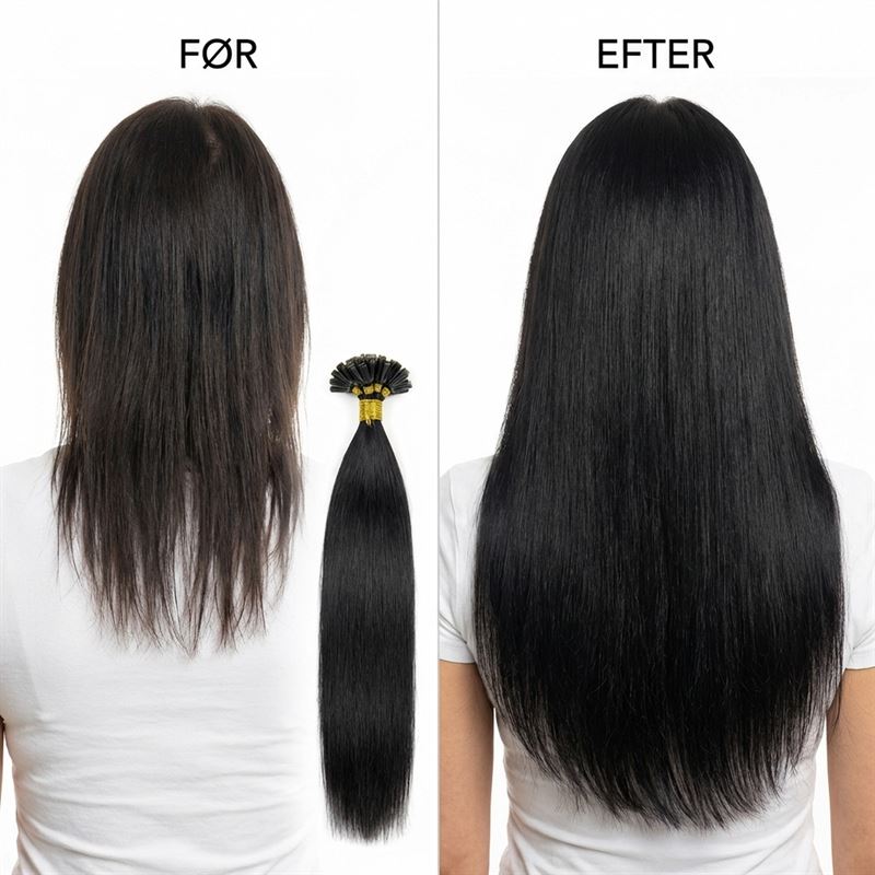 Håret er 100% ægte hår i Remy kvalitet. Remy betyder at alle hårstrå og skællag vender i samme retning fra rod til spids – præcis som dit eget hår. Håret blender naturligt ind i dit eget hår, så du ikke kan se forskel mellem dit eget hår og extensions. Vi anbefaler 2 pakker til fuld påsætning