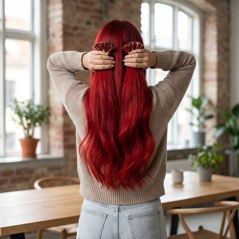 60 cm Hot fusion Extensions – Farve Postkasserød