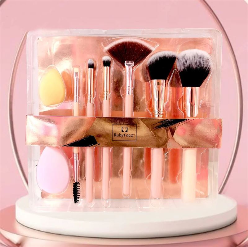 RubyFace Essential Makeup Børste Sæt - 7 børster og 2 svampe (U)