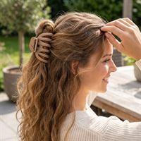 Bibiana i lysebrun er den ultimative hårklemme med et stærkt greb! Perfekt til tykt hår og andre hårtyper. Dette smarte design sikrer, at dit hår forbliver på plads hele dagen uden at glide. Denne klemme er specielt designet til at tackle tykt hår, men den fungerer også godt med fint og krøllet hår.