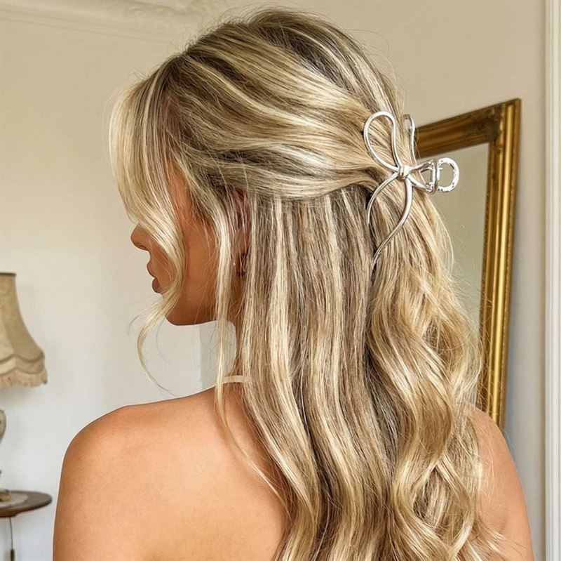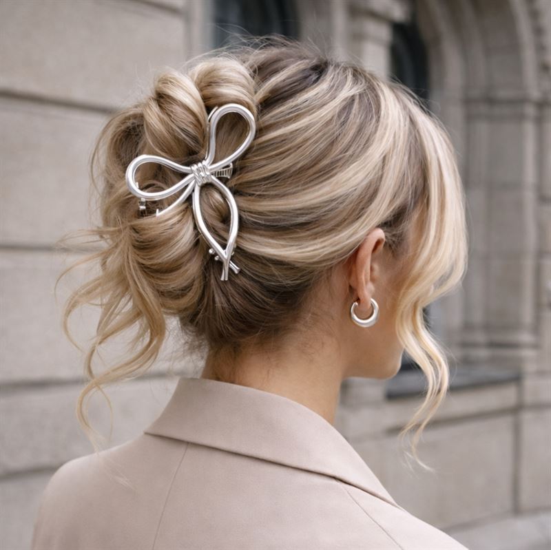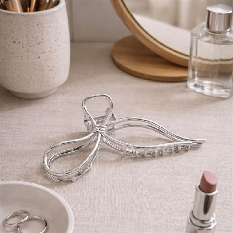 Det åbne sløjfedesign giver et let og elegant look i håret og gør hårklemmen til mere end bare en praktisk accessory – den fungerer også som en fin detalje, der fuldender dit outfit. Den passer både til hverdagsbrug og til de dage, hvor dit look gerne må føles lidt mere gennemført.