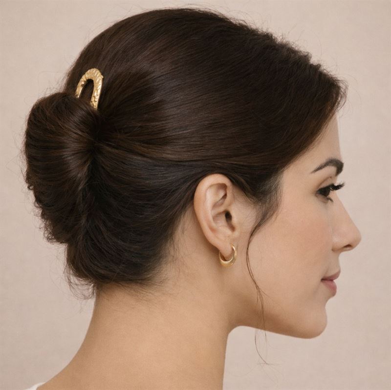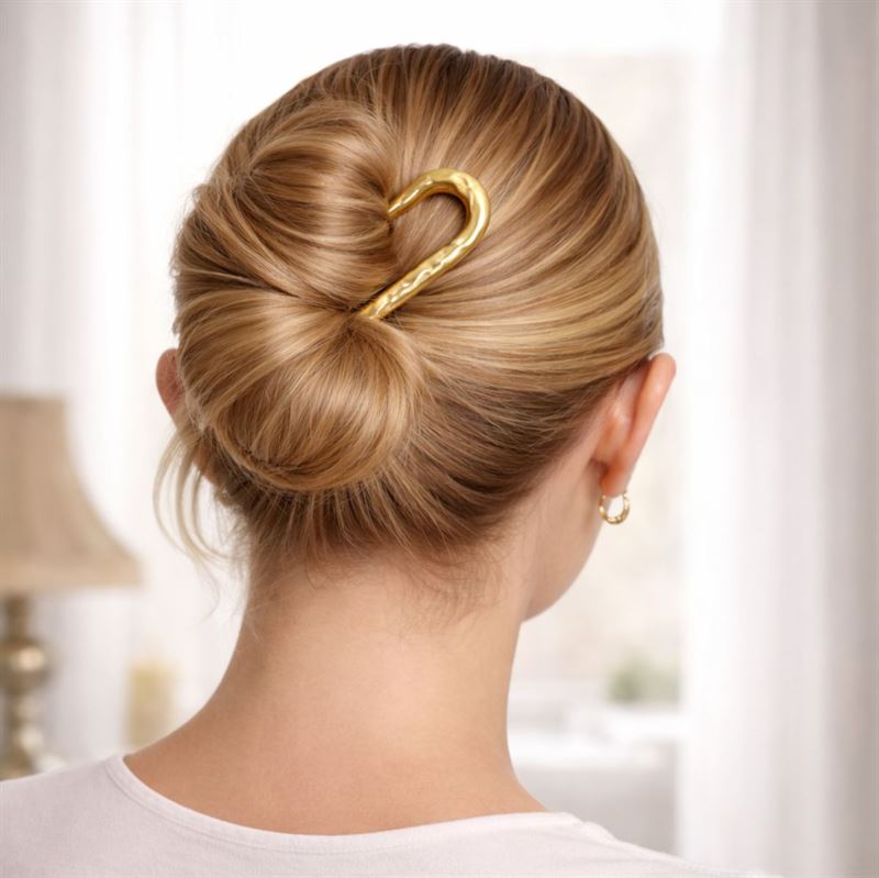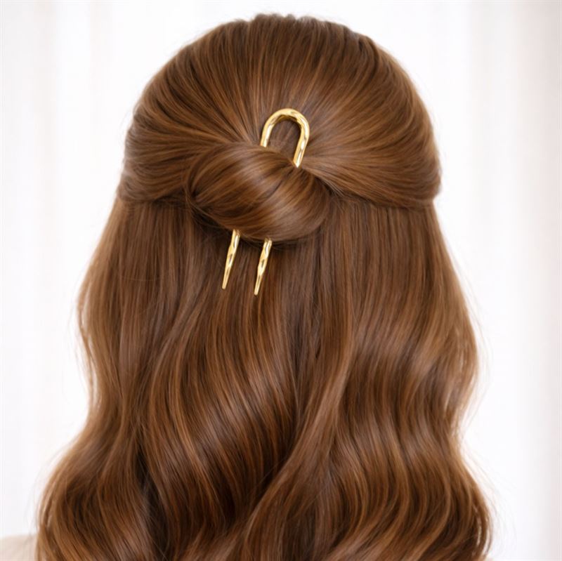 Hårnålen er perfekt til dig, der ønsker en enkel, men sofistikeret opsætning. Brug den til at samle håret i en smuk knold, et twist eller en let opsat frisure, når du vil skabe et feminint look med minimal indsats. Den U-formede form gør den nem at arbejde med og giver samtidig frisuren et elegant finish. Det dekorative design gør hårnålen til mere end bare en praktisk accessory. Den fungerer også som en fin detalje, der gør dit look mere gennemført – både til hverdag, fest og særlige anledninger.