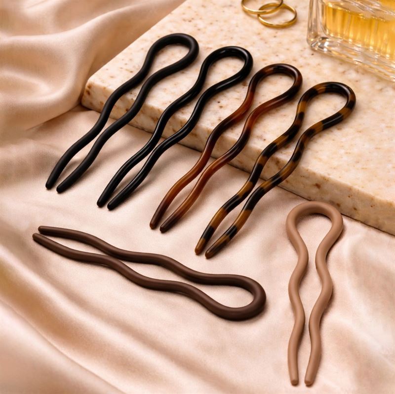 Dette sæt indeholder 6 elegante hårnåle i forskellige farver og finishes, så du nemt kan matche din frisure med både hårfarve, outfit og anledning. De bølgede hårnåle er perfekte til dig, der ønsker en enkel opsætning med et moderne og feminint udtryk.