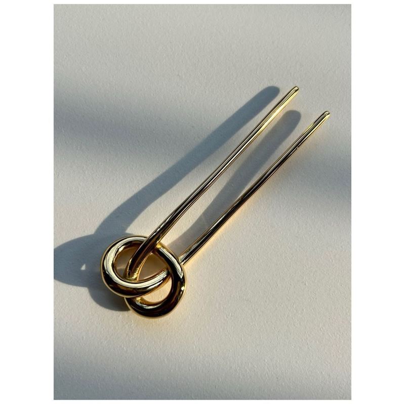 • Elegant design: Den unikke knudeform og guldfinish giver et sofistikeret udtryk, som kan løfte din frisure til nye højder.