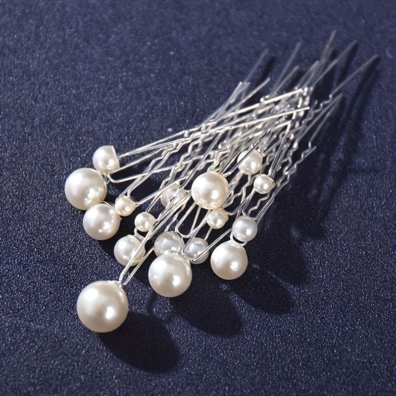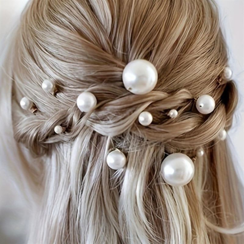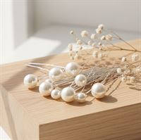 De sølvfarvede nåle kombineret med klassiske, hvide perler skaber et tidløst og feminint udtryk, der passer perfekt til både hverdag, fest, bryllup og andre særlige anledninger. Brug dem enkeltvis for et minimalistisk look, eller mix flere størrelser for en mere romantisk og eksklusiv styling.