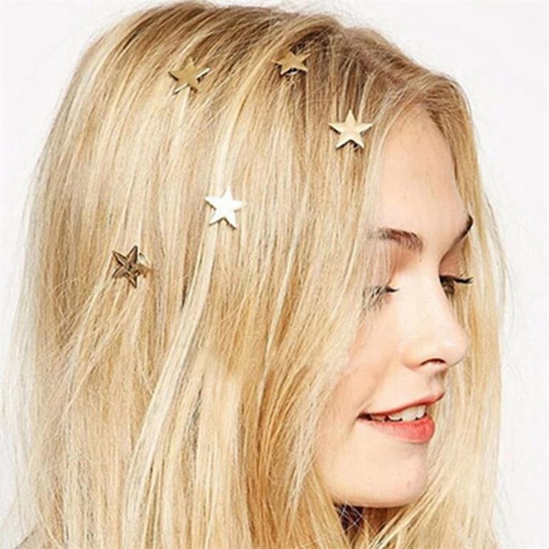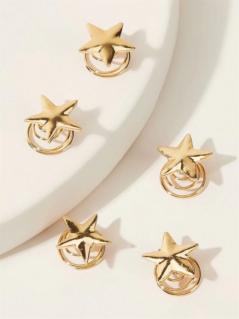 5 smukke stjerne hårspiraler i metal og belagt med guldfarve