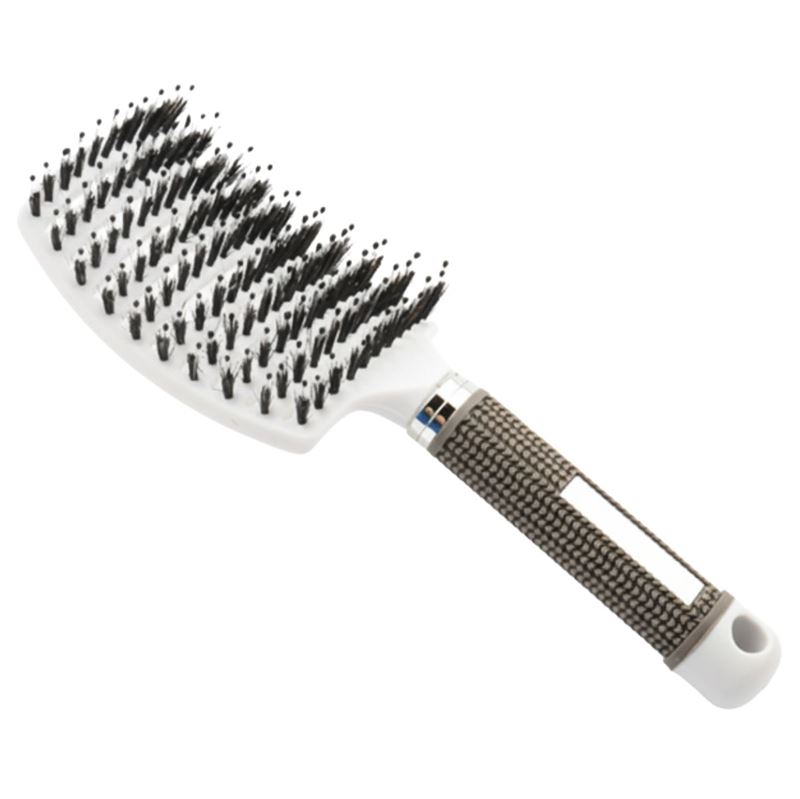 TBC Curved Paddle Brush - Detangling Hårbørste Med Vildsvinehår - Hvid