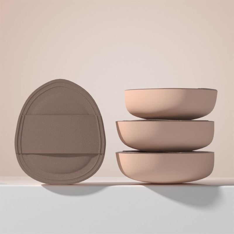 • Sæt med 3 makeup-puffs i smukke nuancer (rosa, beige og brun)