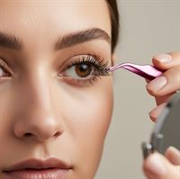 3. Påfør vipperne: Brug pincetten til forsigtigt at placere et vippe cluster under dine naturlige vipper. Start udefra og arbejd ind mod midten.