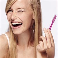 Øjenbrynskniven kan også benyttes til at fjerne små hår i nakken. Selve bladet på øjenbrynskniven er lavet i rustfrit stål.