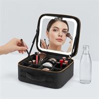 Bedømmelse for UNIQ Makeup Rejsetaske med LED Lys Spejl - Toilettaske / Kosmetiktaske til alt dit makeup - Sort