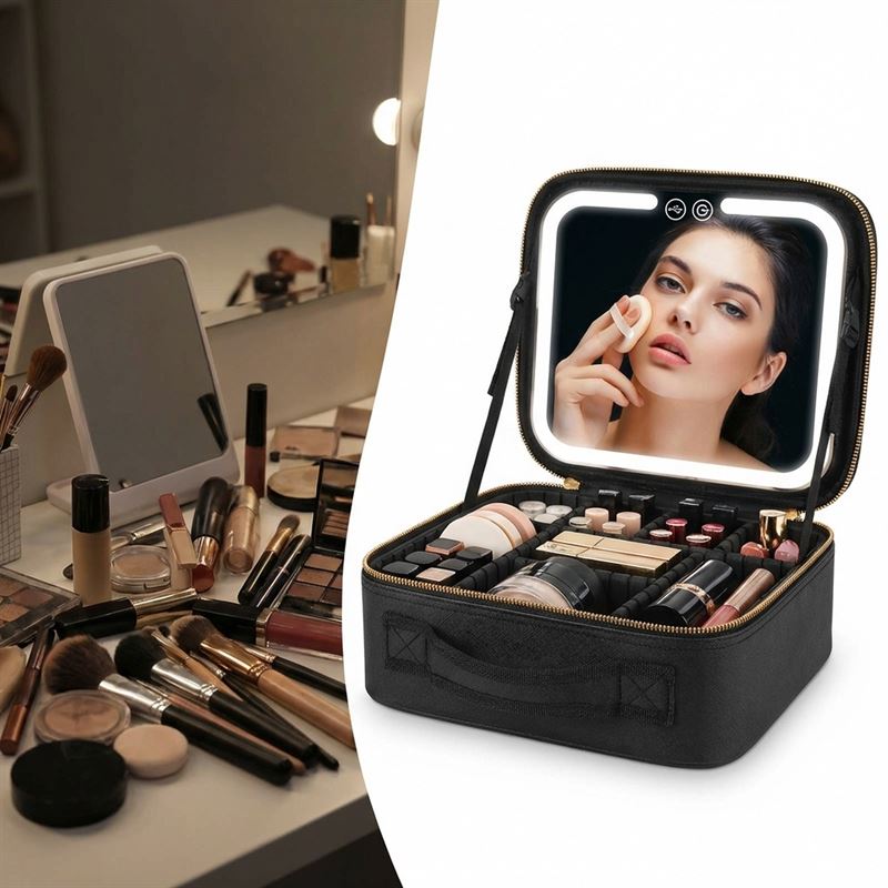 • LED Spejl: Indbygget og genopladeligt med justerbar lysstyrke, så du får den perfekte makeup påføring hver gang.