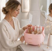 Organiser dit skønhedsunivers i denne ultra-chic UNIQ Retro Makeup Box Organizer i en sofistikeret Rosa. Dette er ikke bare en makeup organizer; det er et fashion statement. Perfekt som gave til enhver fashionista i dit liv - fra mor og søster til kæreste og kone - eller måske bare til dig selv.