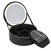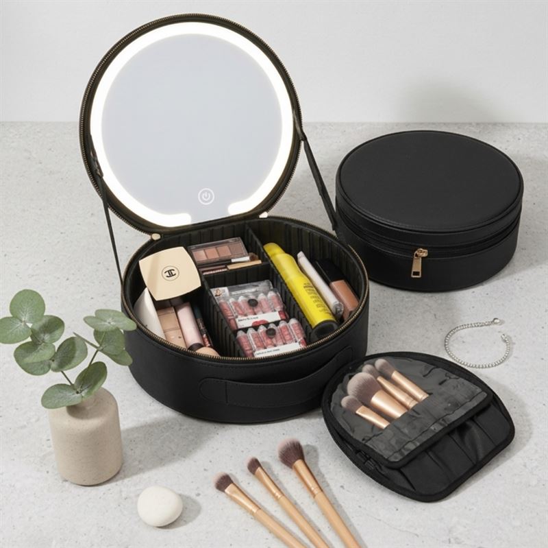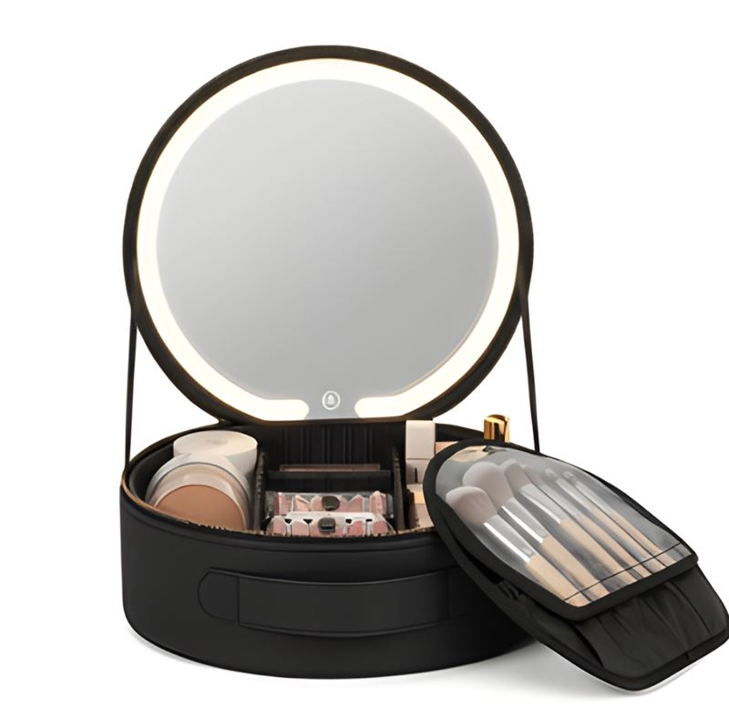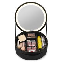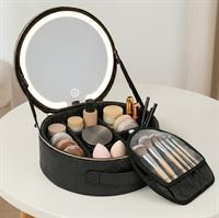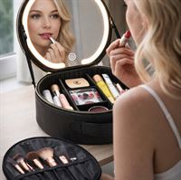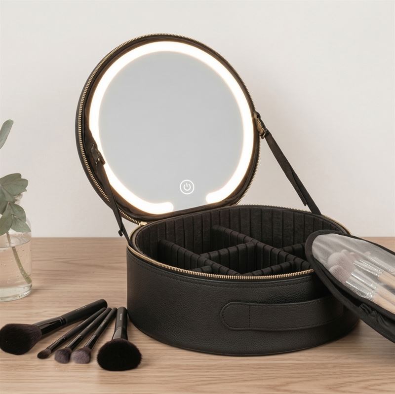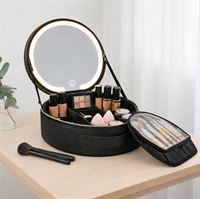 UNIQ Sort LED Makeup‑Spejl med 3‑farvet lys & Praktisk Opbevaring – Travel Vanity Case